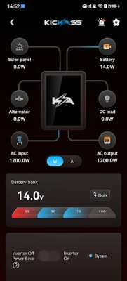 KA Power Boss is KickAss Products Pty The inverter system monitoring application developed by Ltd. This application connects inverter devices through Bluetooth to obtain inverter device data, and displays the current operating status and data changes of the inverter system in real-time through various methods such as charts, animations, etc.