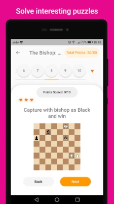 It's time to learn interactive chess courses with activity-based solving! Our courses have hundreds of activities from various learning levels. The different types of interactive activities help you digest the information easily. 1) Explanation Activity: This will teach you a concept in a concise way. 2) Capture Activity: The most fun and engaging way to learn piece movements and captures. 3) Puzzle Activity: Solve interesting puzzles and tactics from a given position. 4) MCQ Activity: Test your knowledge with quiz-based multiple-choice questions. 5) Play with Computer: Train your skills by practicing must-know positions with the computer.