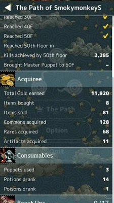 When the character is defeated by an enemy, the puppet will die in its place. If you don't have any puppet, the character will not be able to revive.